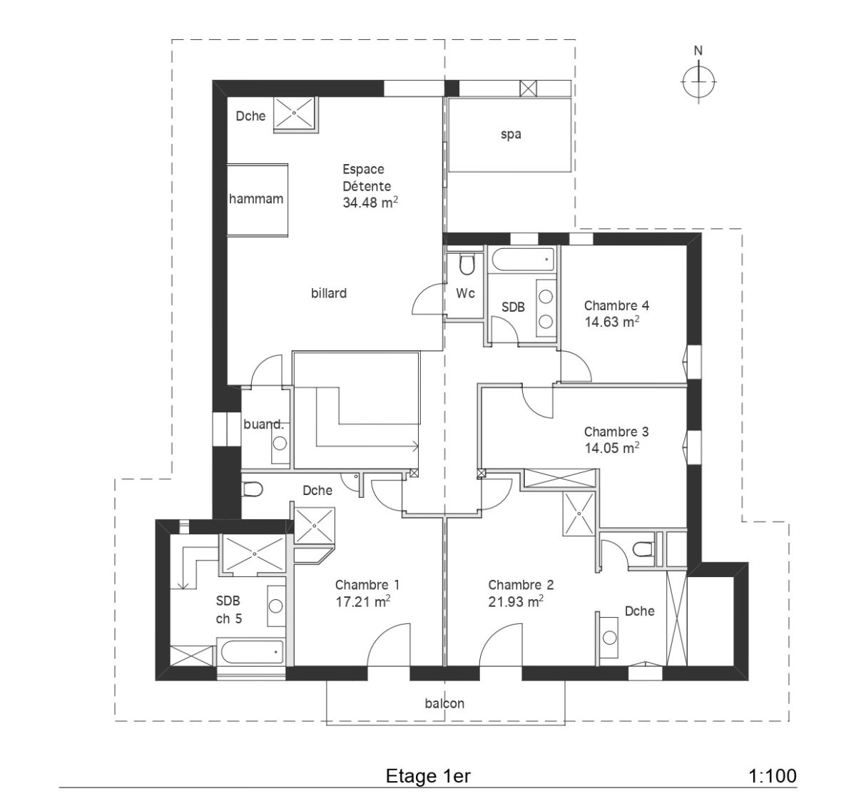 - magnifique espace détente / bien-être avec billard, hammam, accès à la terrasse avec le spa,