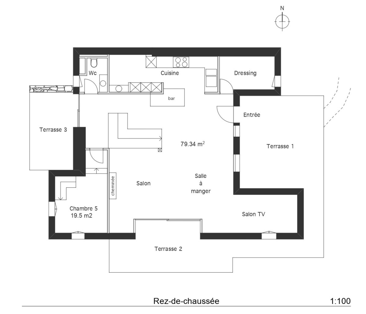 - séjour avec cheminée,